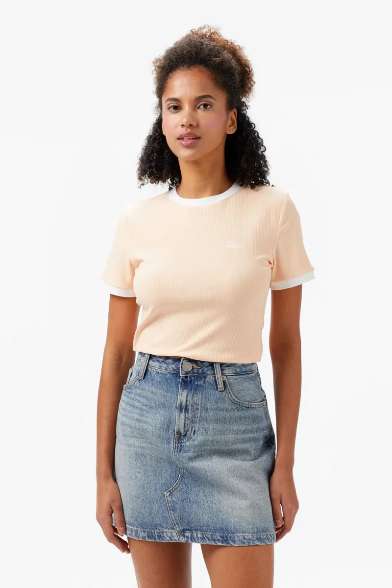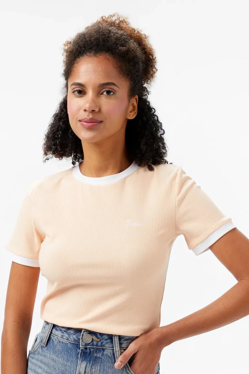 Guess MARIGOLD RIB SS TEE Kadın Pembe T-shirt V5GP08KCRN2-G6J4